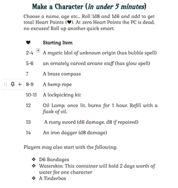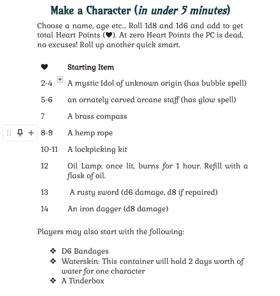In 2022 I set myself the task to write a rules light fast paced minimalistic role playing system that can be quick and simple to get to the table on 1 A5 sheet of paper. The referee with the players develops and crafts the structure of the experience. This system can be whatever you want be it a 2-3 hour one shot or it can be a part of a longer campaign. I designed it to be beginner friendly and hopefully has enough crunch for seasoned role players.
